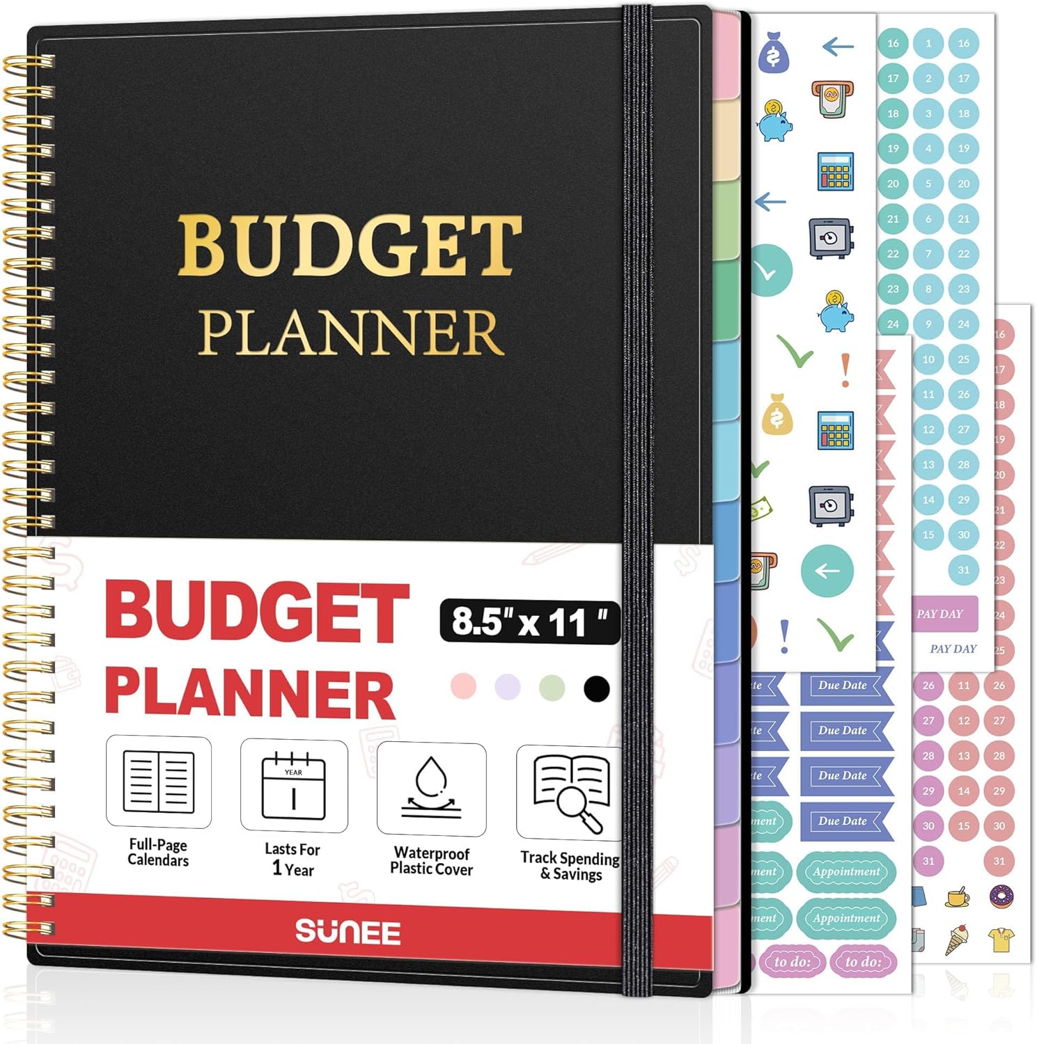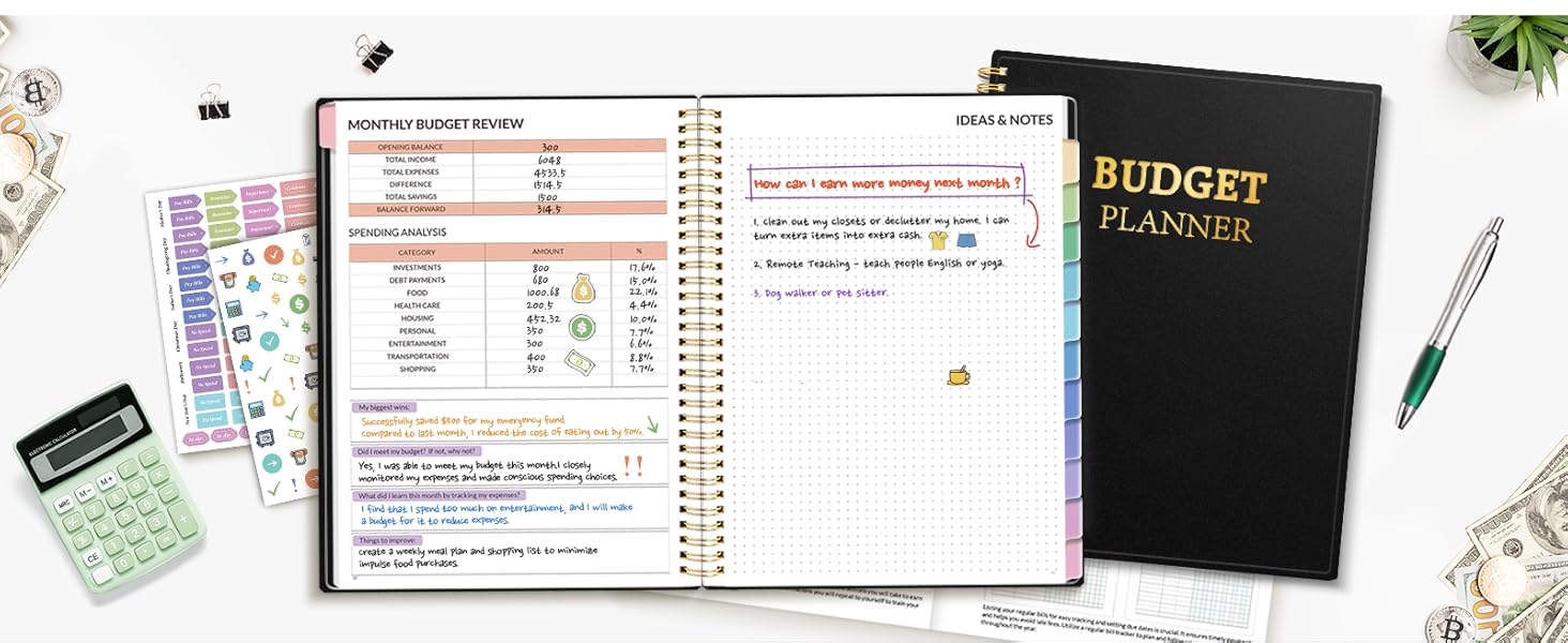 Bonus 4 Stickers and Convenient Design – This monthly budget planner is built for convenience and durability. Water-resistant cover protects against spills, while the elastic band keeps everything secure, and the dual-sided pocket offers extra storage. Plus, we’ve included 4 adorable sticker sheets to personalize your planner and make budgeting more enjoyable. Experience a budget planner that combines practicality with lasting quality.