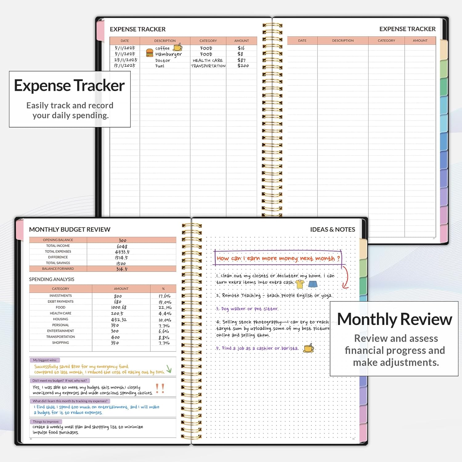 Effective Budget Plan Book – Take control of your finances with the SUNEE budget account book. This all-in-one budget planner allows you to plan and track your income, expenses, savings, and financial goals. Its intuitive layout and easy-to-use sections help you stay organized and make smart decisions to reach financial success. Our financial planner also included a comprehensive guidebook with valuable tips and instructions to help you get the most out of your budgeting planner.