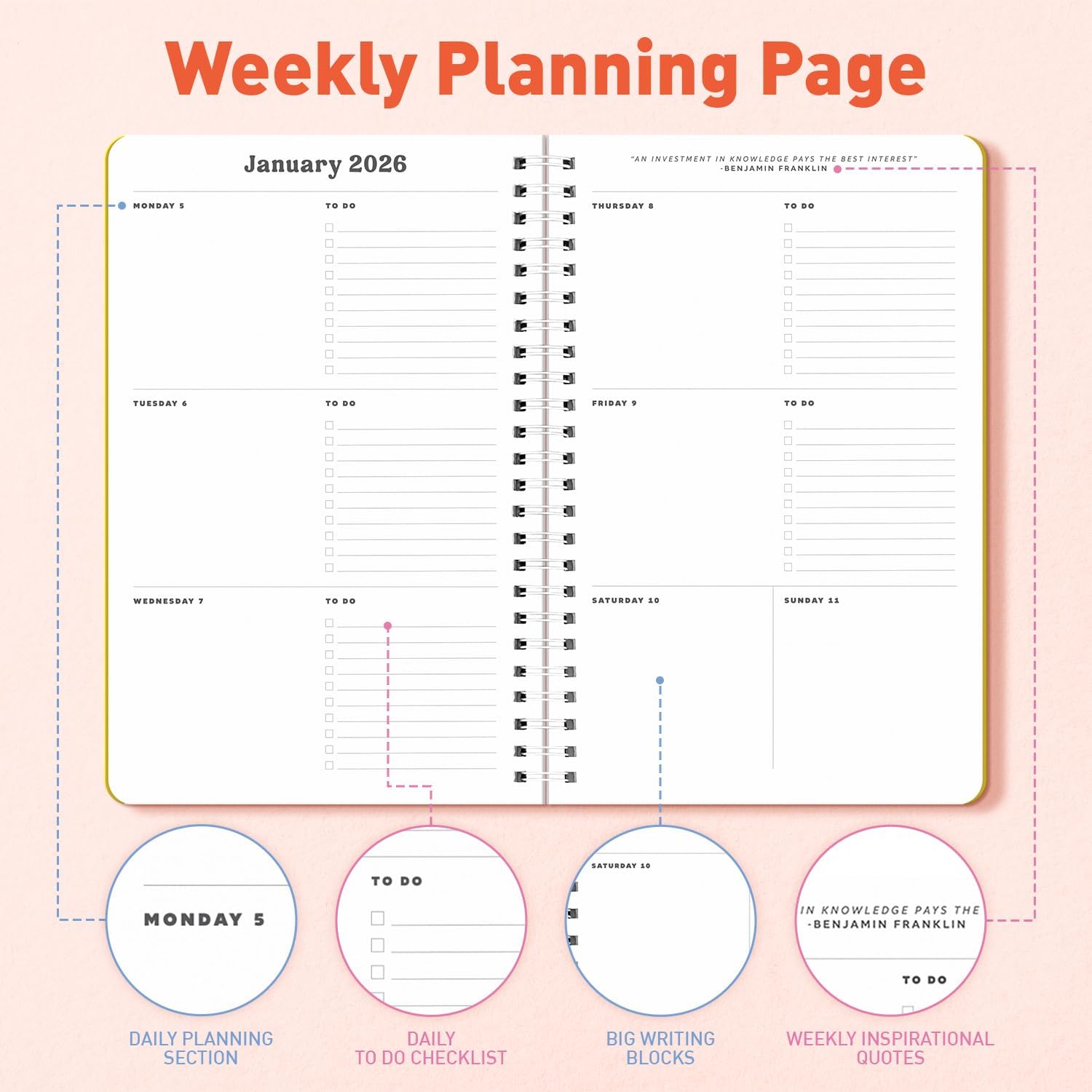 Built to Last – This student planner comes with a thick, sturdy cover and strong inner pages to withstand heavy use throughout the year. Perfect for tossing in backpacks or using daily at home, school, or the office.