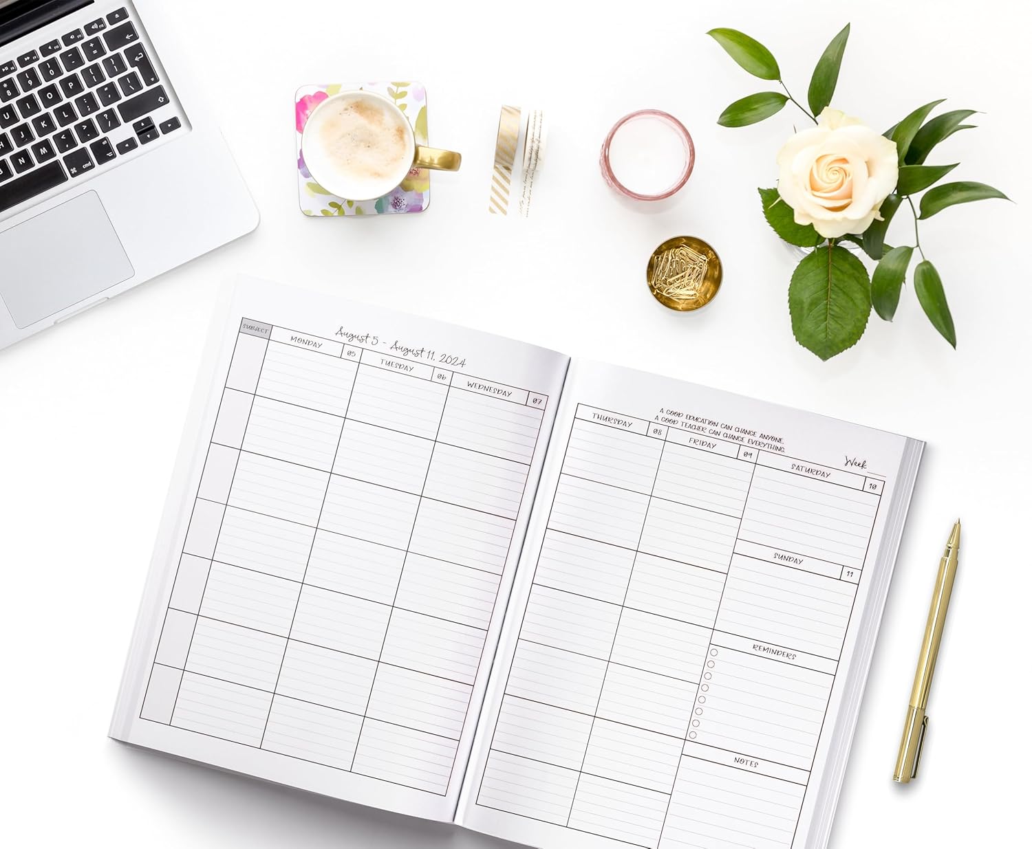 A simple interior design that is free of clutter with lots of extra space to write. Full of inspirational quotes and affirmations to help motivate you through the months and weeks ahead. A beautiful and durable cover and high-quality paper; you can be sure it will last the entire school year.