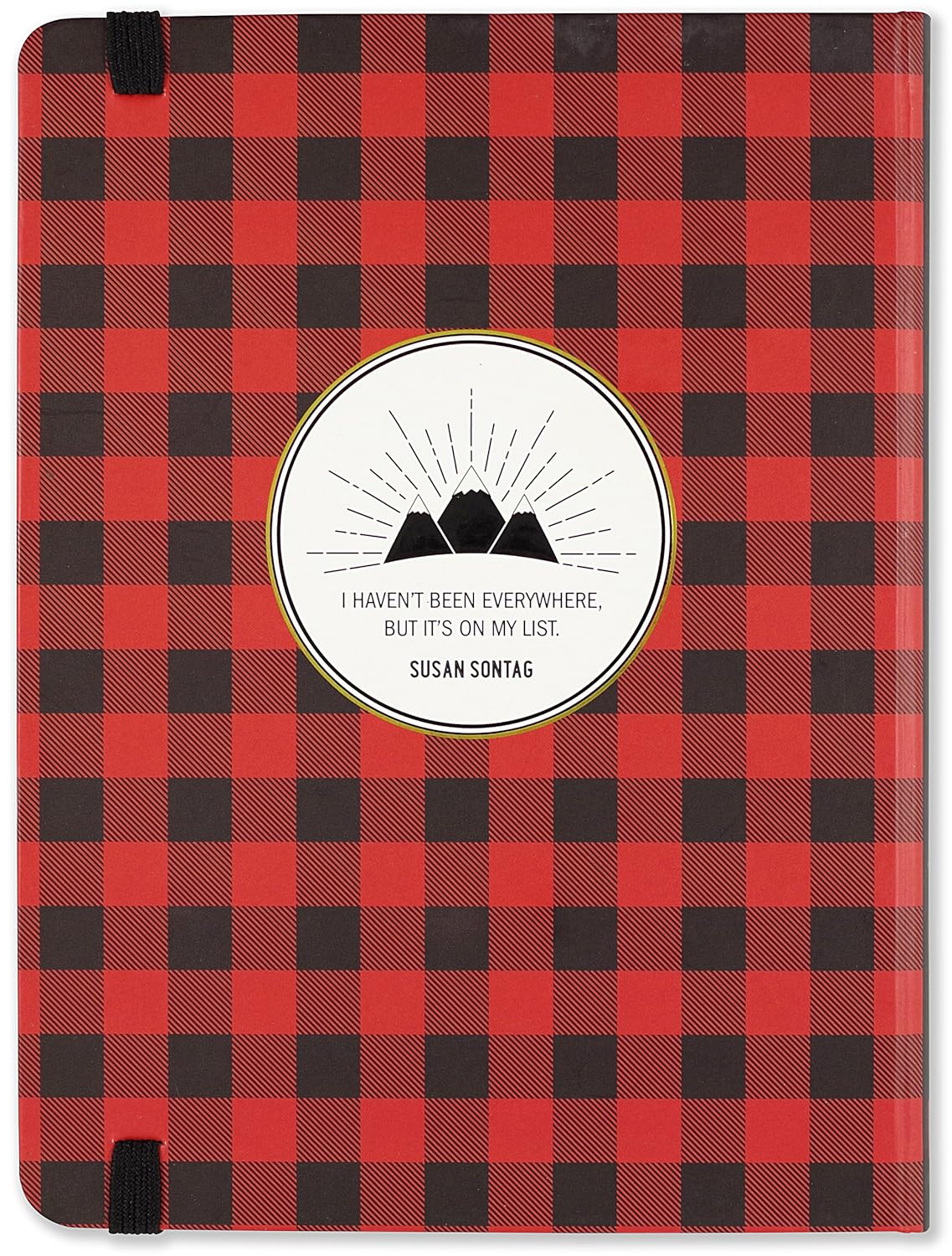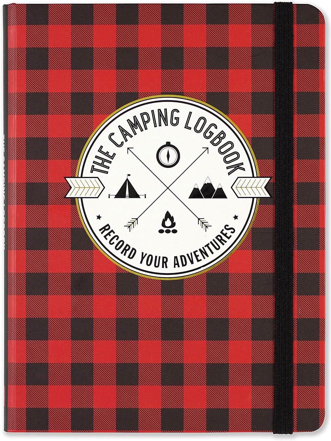 About our Camping Logbook: Appealing buffalo-check cover design with gloss highlights and gold foil stamping Sturdy hardcover binding Inside back cover pocket holds notes, cards, mementos, and more Elastic band attached to back cover keeps your place or keeps logbook closed Journal measures 6-1/4” wide x 8-1/4” high 160 pages