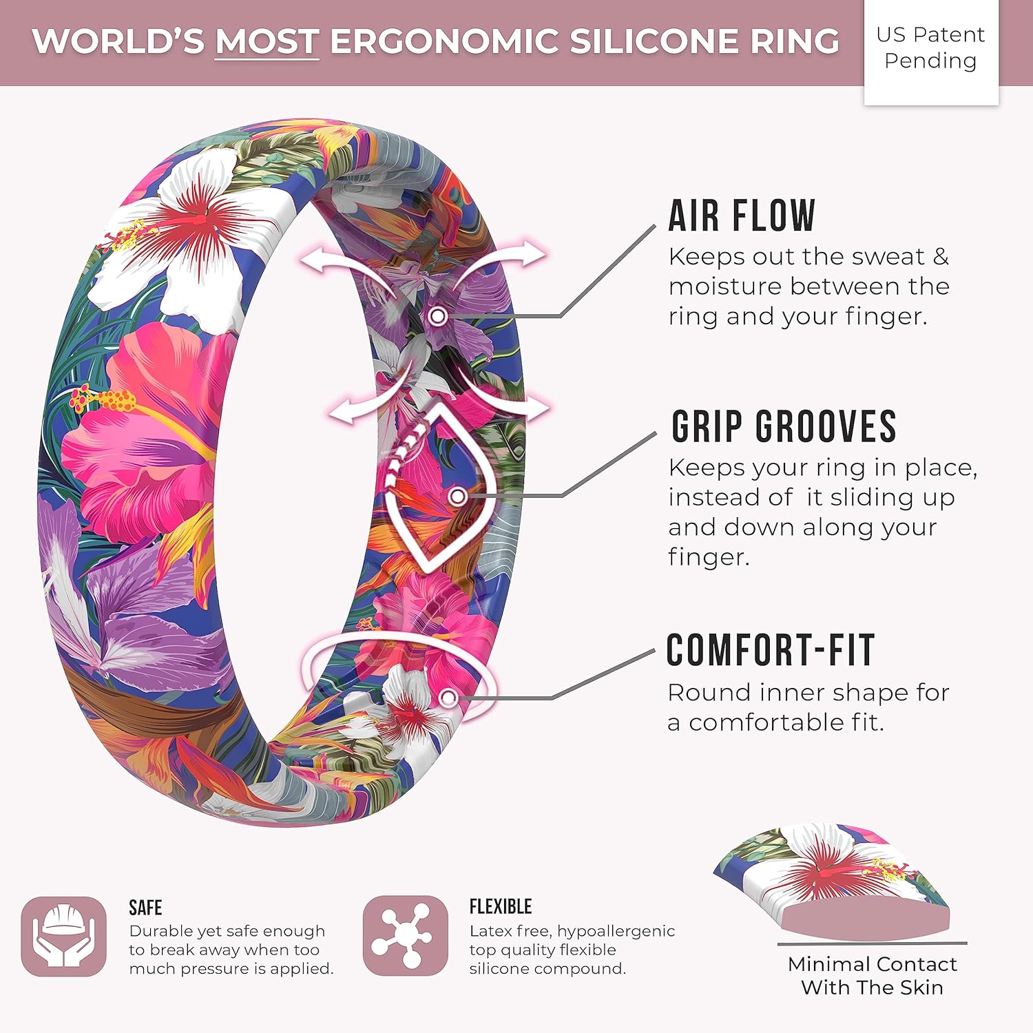 ThunderFit Silicone Wedding Bands for Women, Breathable Printed Design Rubber Engagement Rings 5.5mm Wide 1.8mm Thick – 1 Pack