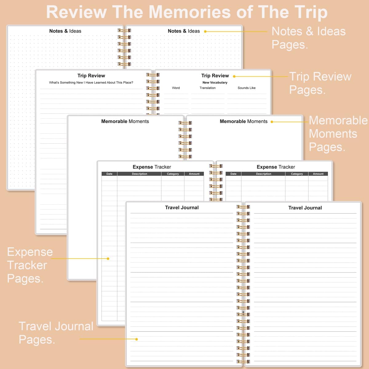 KEEP YOUR TRAVEL ORGANIZED – This travel notebook will help you to plan your itinerary before start your trip, record trip journal and plan for your next travel. It can help you plan your trip effectively and maximize your time at each destination. By making a travel packing list, you’ve got all the important details sorted out. This trip organizer will help you relax and enjoy your trip, saving you a lot of time.