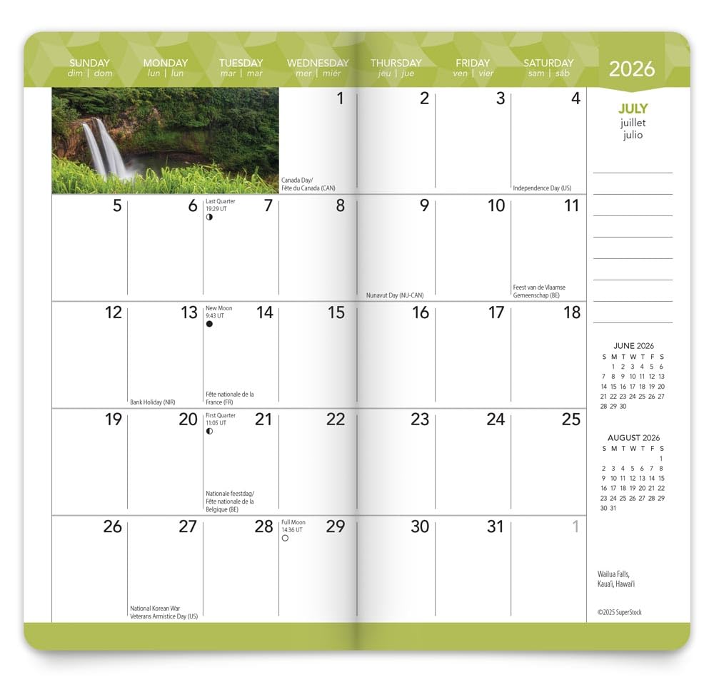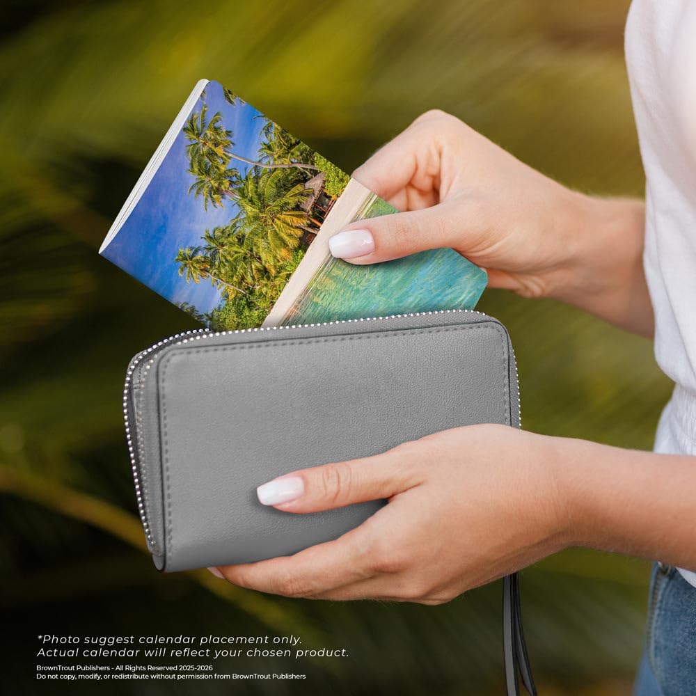 Compact and Convenient – Slightly larger than a checkbook, handy size allows for portability and convenient planning over two full yearsStriking Imagery – Interior pages contain full-color photographs or original graphic designsDurable Construction – Durable binding with a sturdy wraparound coverMonthly Grid Display – All major holidays and moon phases listed, with extra lines for writing notes and appointmentsSupplemental Pages – Additional pages for notes, contacts, and important reference datesSpecifications – 2 years (January 2026–December 2027); 3.5″ x 6.5″; 64 pagesBrownTrout’s Environmental Commitment – Manufactured with sustainable materials, including Forest Stewardship Council®-certified paper and soy inkAbundant Gift Options – BrownTrout has over 1,000 calendars featuring popular subjects and themes in various formats to keep you organized