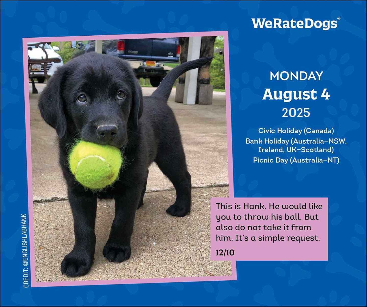 With the magical wit that only the internet’s king of dog humor can provide, Matt Nelson rates the dogs in this calendar on a competitive 10-point scale. And because all the dogs are better than perfect, the good boys and girls each earn a rating of greater than 10/10!