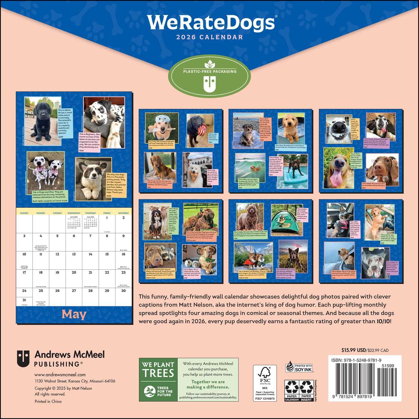 The WeRateDogs 2026 Wall Calendar showcases all-new delightful dog photos for 2026 paired with funny captions from Matt Nelson, the internet’s king of dog humor.
