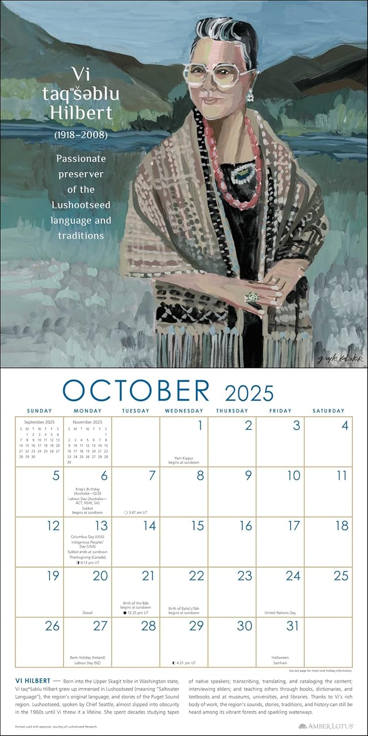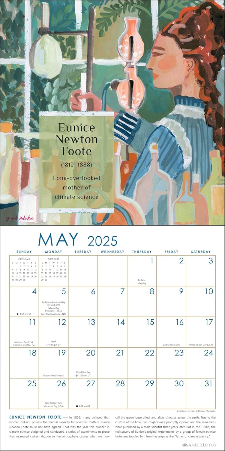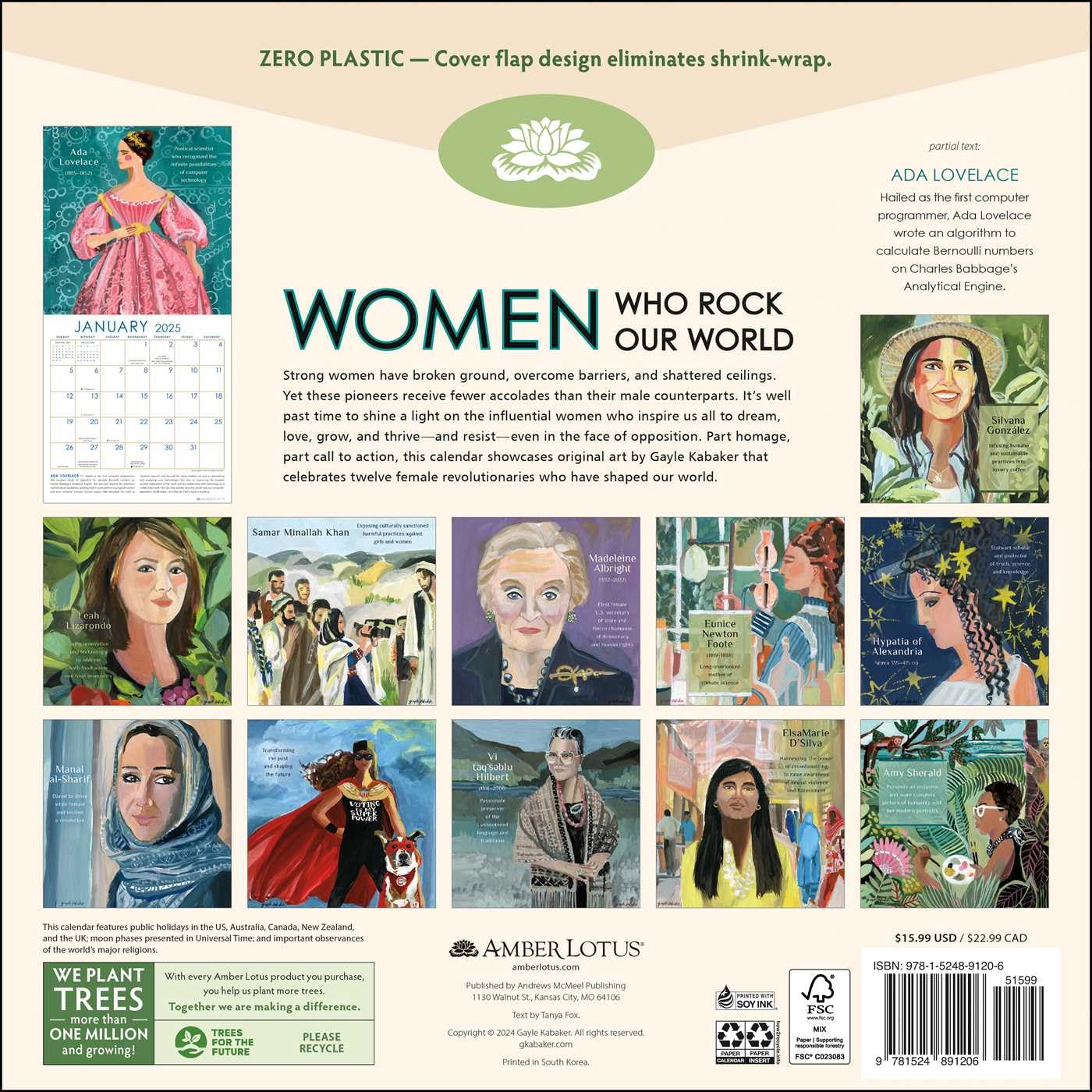 Features include: 12″ x 12″ wall calendar (12″ x 24″ open) Wrap-around cover design eliminates need for plastic packaging High-quality printing on premium paper stock Spans January—December 2025 Official major world holidays and observances Moon phases, based on Universal Time Contemporary illustrations by Gayle Kabaker of courageous women Inspiring text about their achievements and issues they championed Wall art for your home, school, or office that provides a sense of time for planning and dreaming WE PLANT TREES to offset our carbon footprint and resource usage—more than ONE MILLION and growing! NO SINGLE-USE PLASTIC—We have eliminated single-use shrink wrap to reduce plastic pollution. SUSTAINABLY SOURCED—Our paper is sourced from a combination of recycled materials and wood harvested from socially and environmentally sustainable forests and is Forest Stewardship Council® Certified.