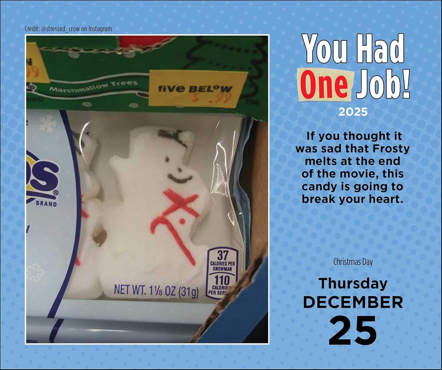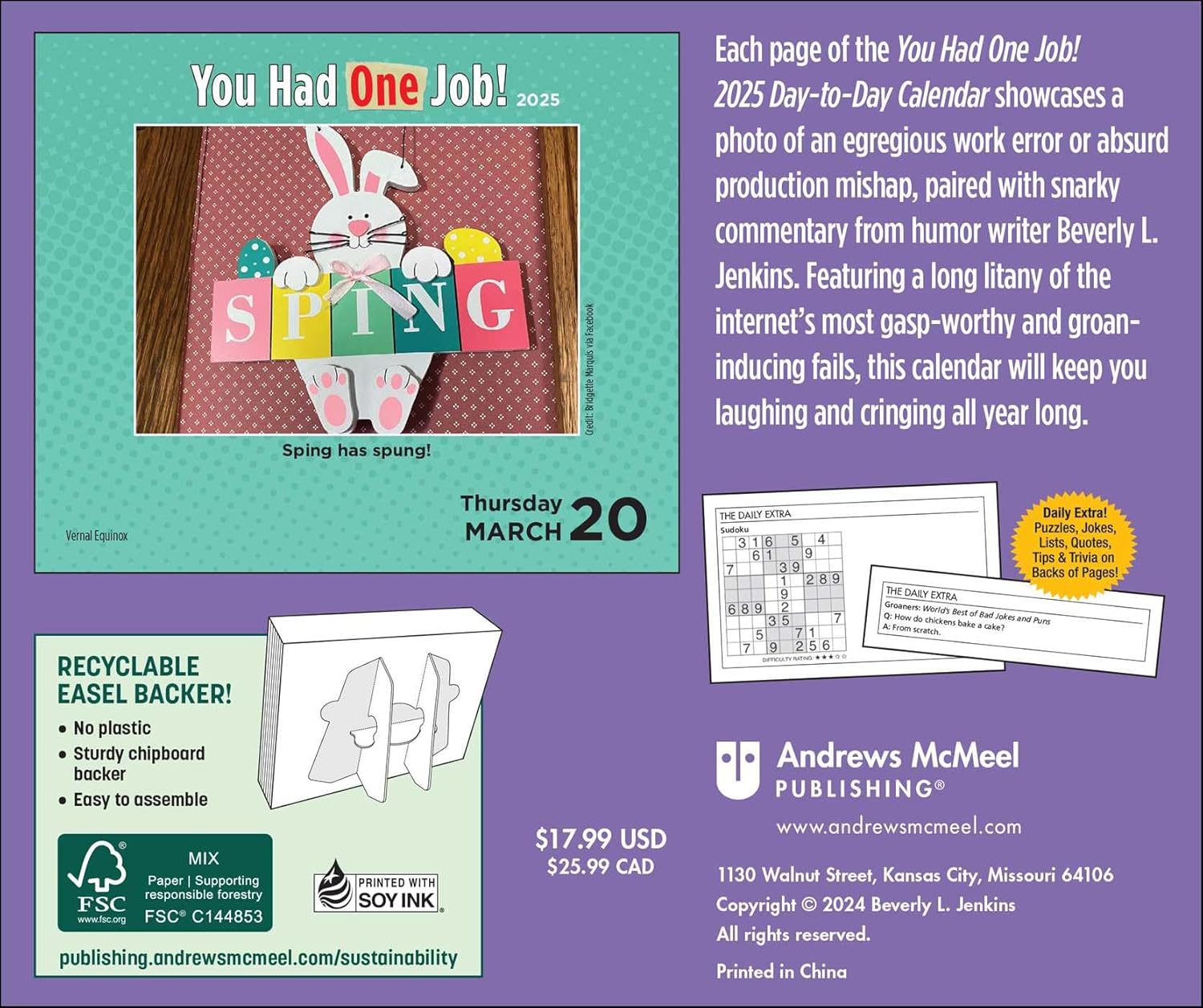 What could go wrong, they said. It’s a simple task, they said. In Beverly L. Jenkins’s You Had One Job 2025 Day-to-Day Calendar, everyday mistakes take on side-splitting, epic-fail proportions.
